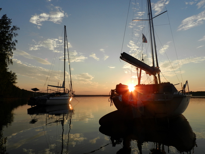 [моё] Яхта Рыбинское водохранилище Молога Отдых на природе Парус Поход Путешествия Видео Вертикальное видео Длиннопост Природа Река Остров Закат Фотография