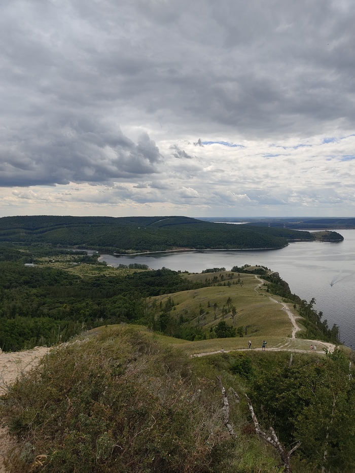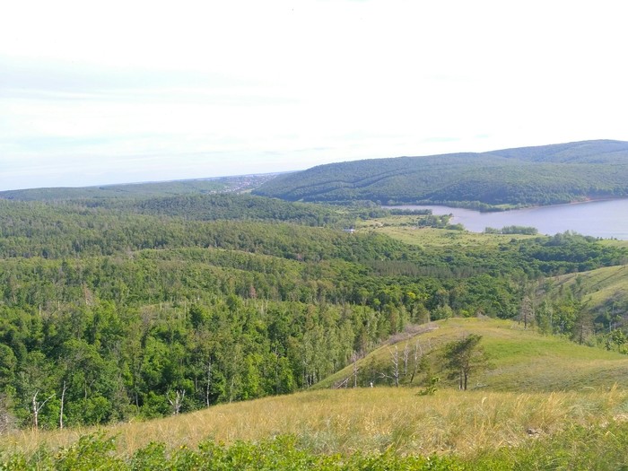 Прибывания на территории парка "Самарская лука" стоит 200 р с человека, за подъем на гору ещё 100 р. На велосипедах дальше нельзя, оставляем на парковке и идём в гору пешком.