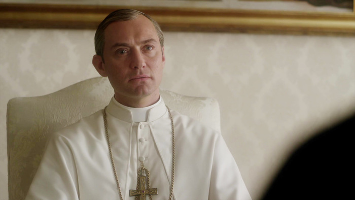 Шикарный Джуд Лоу в роли Ленни Белардо вальяжно прогуливается вдоль галереи с картинами, параллельно летит метеорит и набирает обороты – в конце ему предстоит сбить Иоанна Павла II, фоном играет All Along the Watchtower Боба Дилана (версия от Devlin), состоящая из библейских отсылок. Роскошь!