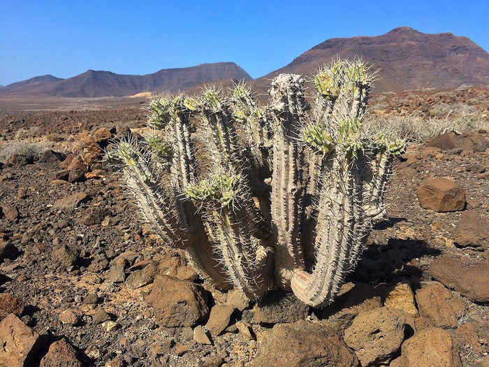 Именно эти суровые условия создали идеальную нишу для молочая хандия (Euphorbia handiensis). Полуостров Хандия на южной оконечности Фуэртевентуры стал его единственным домом на всей планете. Представьте: растение живёт на территории размером с небольшой район города, и больше нигде его не встретишь!