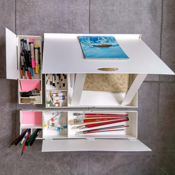 Решил сделать подарок на День Рождения своей леди, выбор пал на мольберт. Функционально, на долго, да и тяжело видеть как твоя любимая гнет спину над неудобным столом пока занята любимым делом.