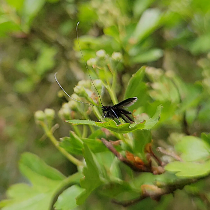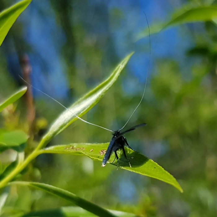 Мне нравятся бабочки и мотыльки "макролепидоптера" прежде всего за окраску и форму крыльев. "Микра" - молеподобные и другие мелкие чешуекрылые, привлекают своим "дизайном" . Но есть представители молевидных чешуекрылых, сочетающие в себе яркие, блестящие крылья и удивительное строение с огроменными усищами. Это семейство Adelidae, длинноусые моли. Иногда, весной и с начале лета они попадают в кадр.