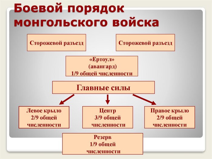 - В битве против ближневосточных и европейских армий монголы использовали тактику «ударил-отбежал»: подъезжали, выпускали несколько залпов и отходили, не давая врагу даже приблизиться.