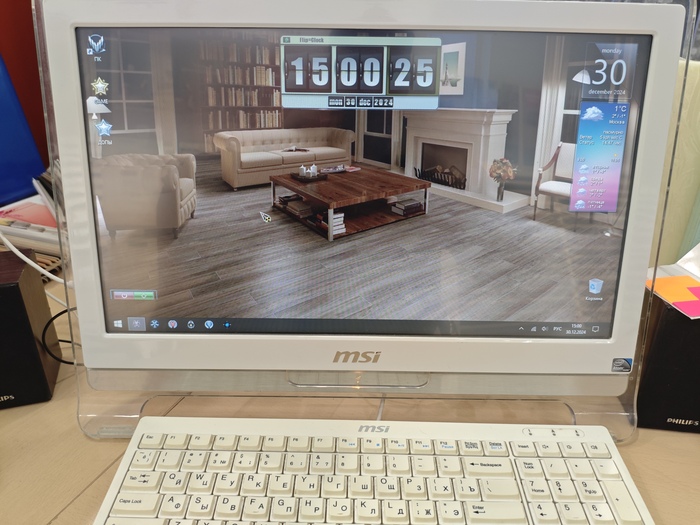 Для тех, кто не помнит из предыдущего поста: если моноблок не чистить, то он набивается пылью, которая благополучно засасывается на подсветку по углам дисплея, оставляя серые пятна на белом фоне.