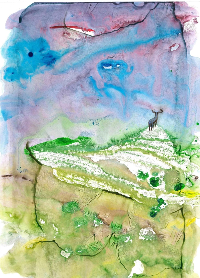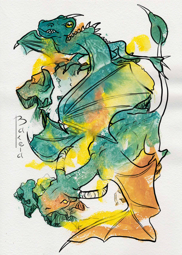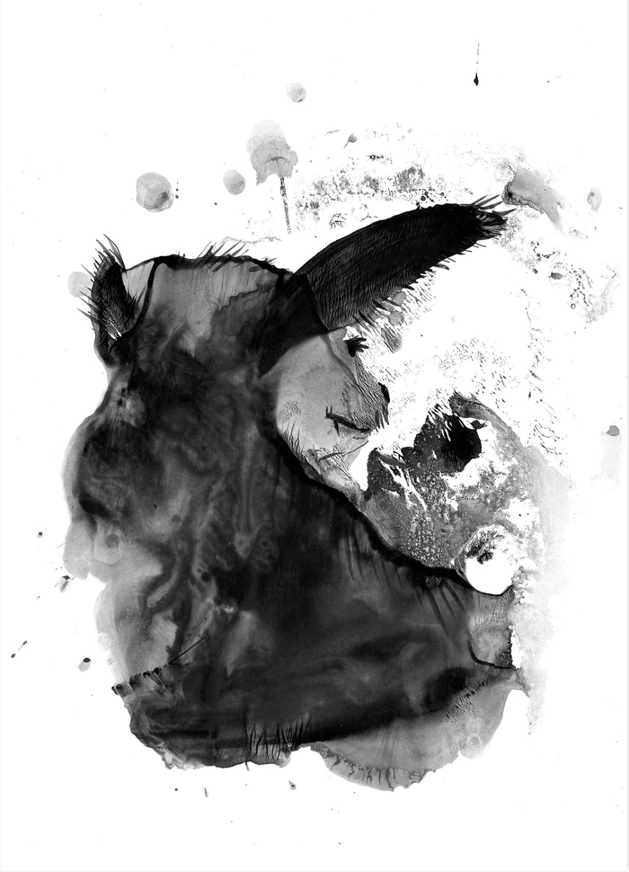 «Монотипия – это техника однократной печати. В отличие от других видов печати, где можно создать несколько экземпляров, монотипия позволяет получить только один настоящий отпечаток. Я работаю, нанося офортную краску на пластину из оргстекла, грубо закрашивая формы сплошным черным цветом, а затем с помощью нескольких инструментов удаляю краску, создавая фигуры, существ, пейзажи и т.д.