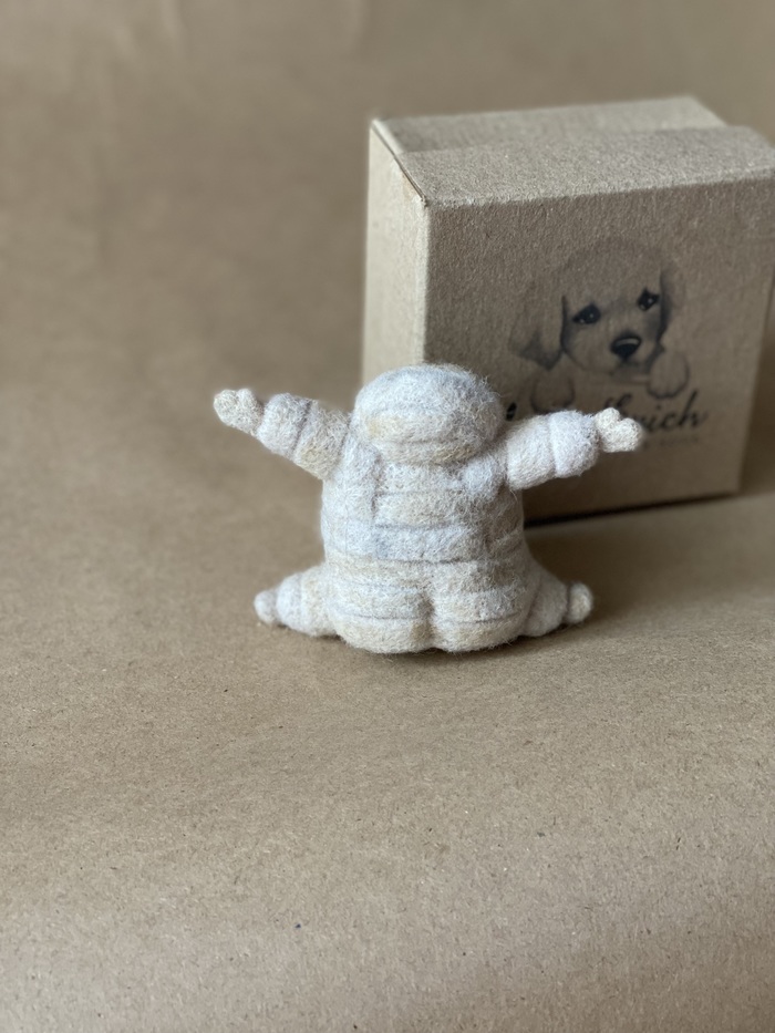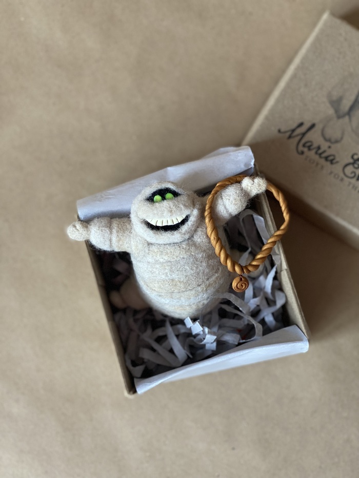 Выполнен как и все мои игрушки - в технике сухое валяние, из 100% шерсти. рост коло 10см, может как и сидеть самостоятельно, так и может быть выполнен в качестве подвески в машину или ёлочной игрушки.