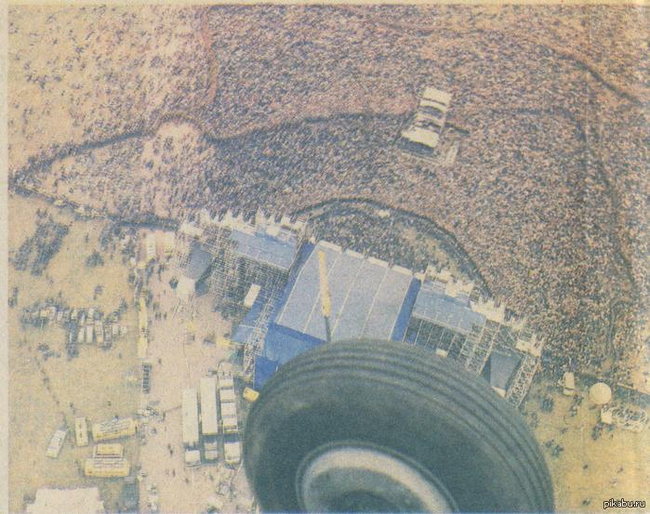 Посетители фестиваля «Монстры рока» на поле аэродрома Тушино в Москве, 1991 год.