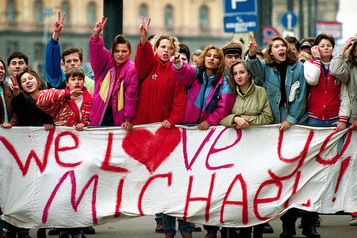Поклонники Майкла Джексона перед гостиницей «Метрополь», Москва, сентябрь 1993 года.