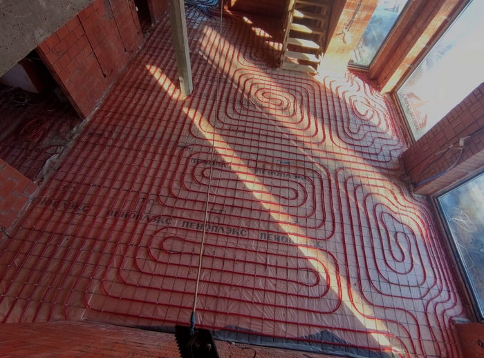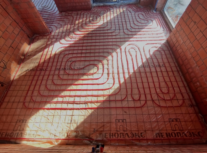 А вот и не одно, а двух этажный дом, где отопление только теплыми полами. Заказчики пришли к этому сами осознанно ещё до обращения за расчетом предложения. Возможно, следя за нашей деятельностью и рассказами о системах отопления.. Ггг.