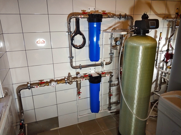 Но, конечно, здесь всё внимание на себя забирает наилютейшая система водоочистки из 4(!) колонн, так как только железо в воде из скважины превышено в 150 раз..
