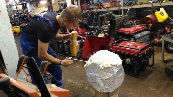 А на сам пистолет сделал просто. Отрезал старый баллон от пены. Выбил клапан. Клапан на пистолете давно выбил, клинило его. Закрутил, залил растворитель и всё. Ну немного дал прокапаться через пистолет. Всё. Три года,полет нормальный.