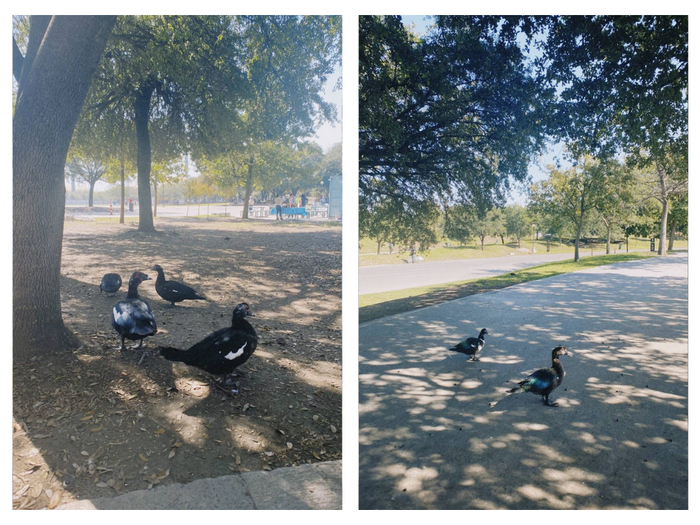 По парку помимо людей гуляет много вальяжных птиц, они ходят совершенно спокойно - видно, что им тут комфортно, они привыкли к людям и им никто тут не угрожает :) гладить не пробовали, любовались на расстоянии. А вот белки очень шустрые - при всём желании не поймаешь, даже просто глазами уследить за их передвижениями бывало непросто.