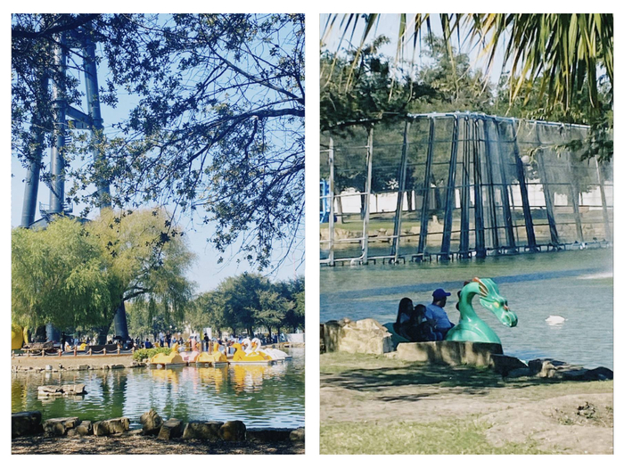- Ещё можно покататься в пруду на катамаране (вот тут до цен не добрались, зато вы можете выбрать утку, лебедя, фламинго и даже дракона - под любое настроение :)