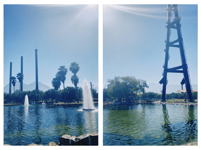 Мы выбрали неспешную пешую прогулку и она была прекрасной! Парк огромный, очень зелёный, отовсюду видны горы, много фонтанов и тени от деревьев, куда можно спрятаться от солнца. Есть зоны с тренажёрами (довольно современными), туалеты и питьевые фонтанчики.