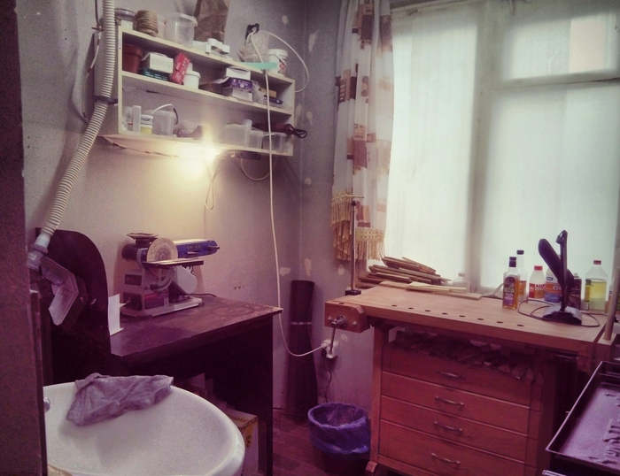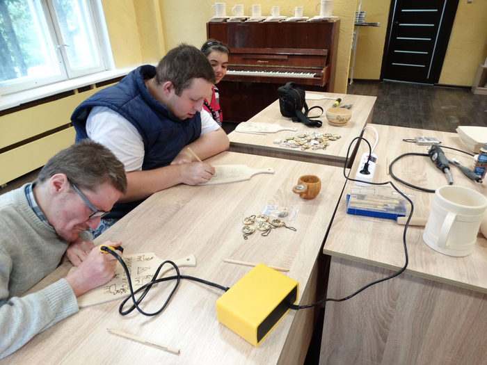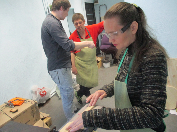 При данном обороте сувенирной продукции пришлось переезжать в Мончегорск. С помощью Поддержки было выделено хорошее помещение,коллективом организована мастерская с выполнением полной технологической защиты при работе с электроинструментом.