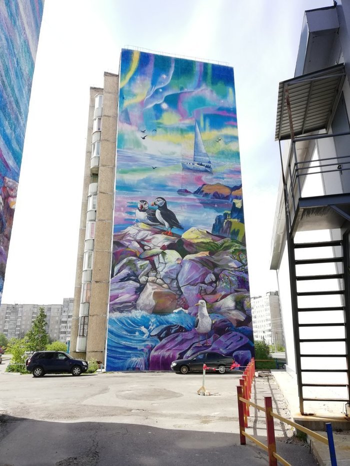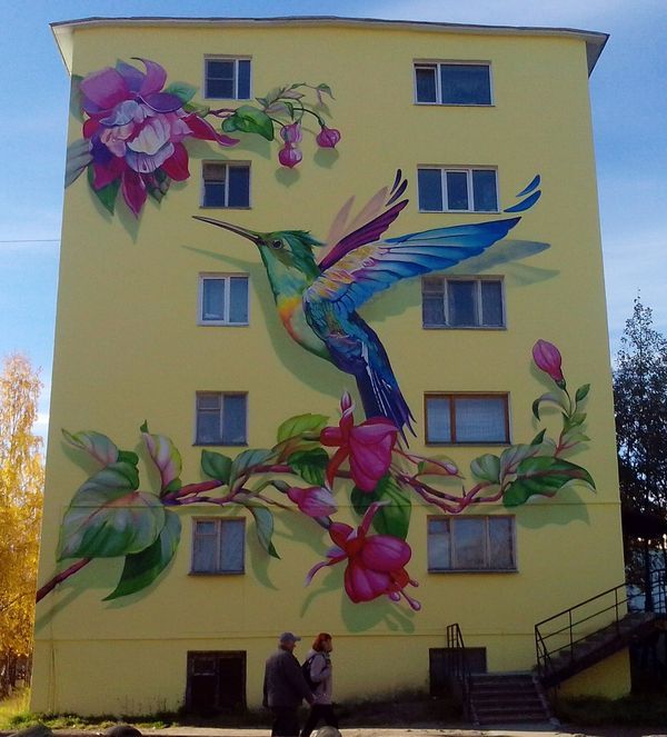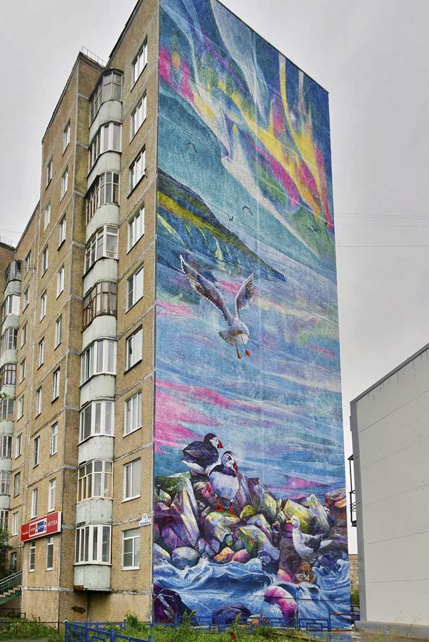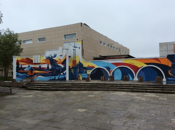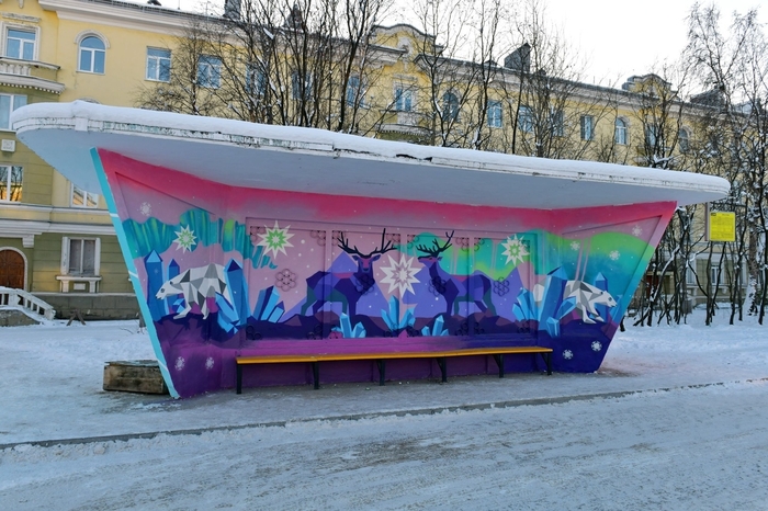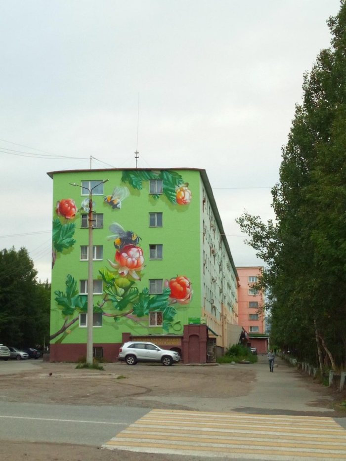Благодаря местной администрации и участию градообразующего предприятия в некоторых северных городах вполне успешно справляются с украшением фасадов домов (и не только).