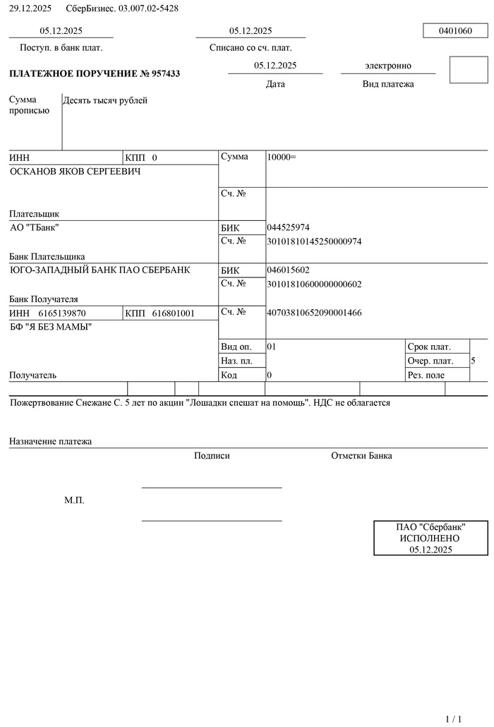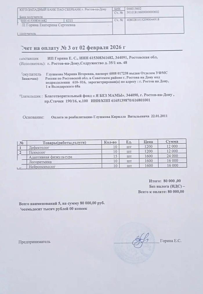 Счёт и платёжка за ребёнка в реабилитационный центр прилагается. Из полной суммы наших тут 10 000 (наши платёжки я собрал в одну карусель выше)