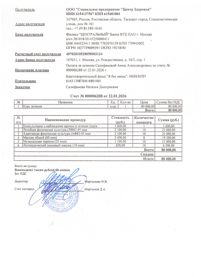 Счёт и платёжка за ребёнка в реабилитационный центр прилагается. Из полной суммы наших тут 51 400 (наши платёжки я собрал в одну карусель выше)
