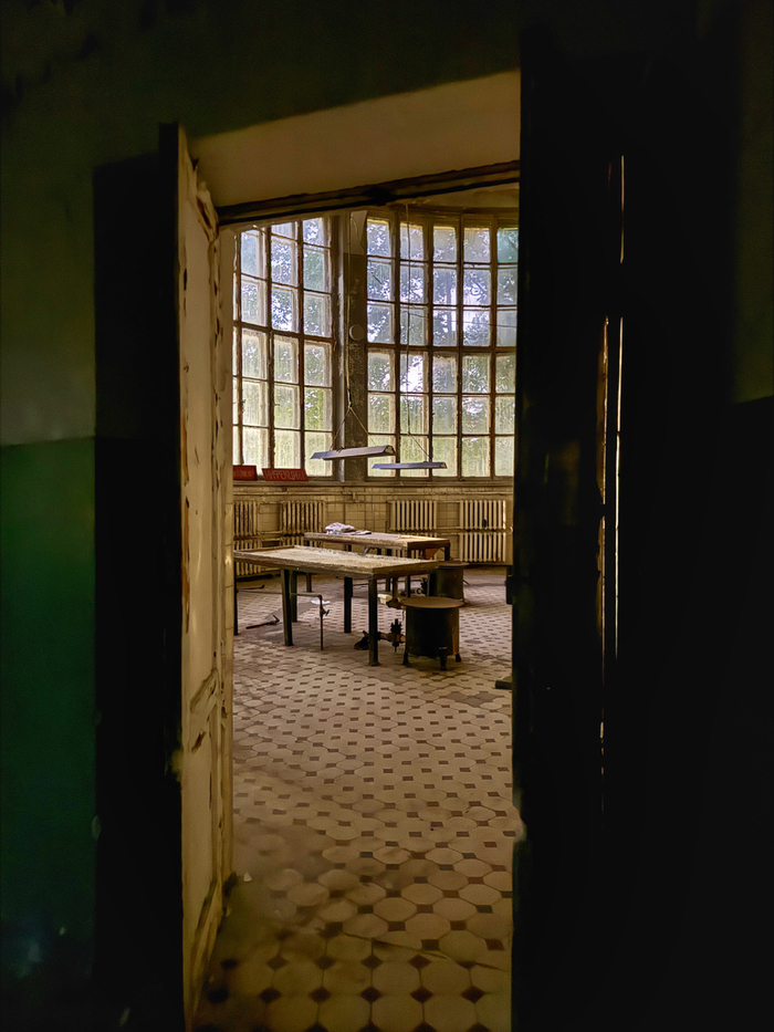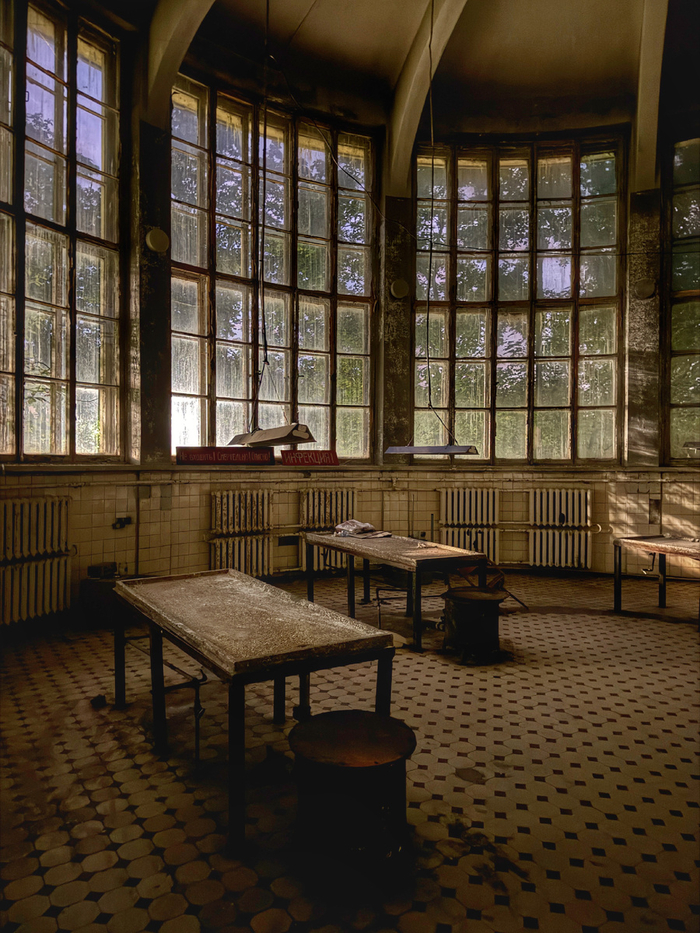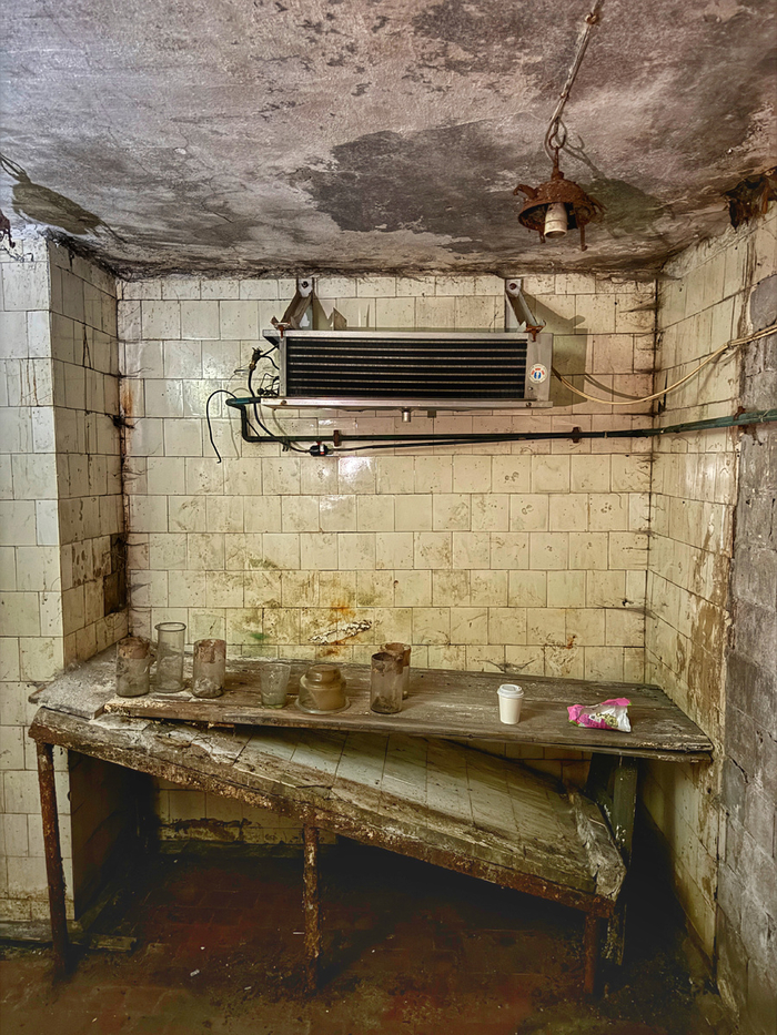 Изнутри здание выглядит куда более мрачным, нежели чем снаружи. Начнем с цокольного этажа. Он предназначался для хранения тел. Солнечный свет сюда почти не проникал. В настоящее время электричество в морге отсутствует, поэтому мне остается лишь надеяться на свои глаза, которые уже привыкли находиться в кромешной темноте, и осторожный свет фонаря.