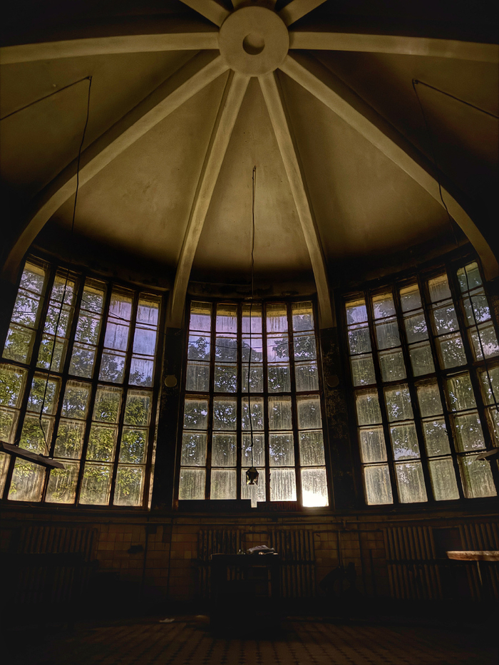 Остекление до потолка и цилиндрическая форма помещения связаны с тем, что работникам морга зачастую требовалось равномерное освещение, которое в то время можно было обеспечить таким конструктивным решением.