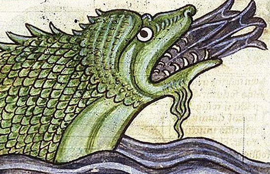 "Сей зверь – самое громадное из морских чудовищ. По природе своей оно пожирает людей и корабли, а также китов и всё, до чего может дотянуться. Долгие дни скрывается оно под водой, а затем поднимает из глубин голову и ноздри и ждёт следующего прилива. Корабль наш чудом проскользнул меж его челюстей, и зубы его были как подводные скалы. Злобный колдун вызвал чудовище своей магией, чтобы погубить нас, однако знал я, что чудовище только всплыло на поверхность, потому и успел проскочить через пасть монстра..."