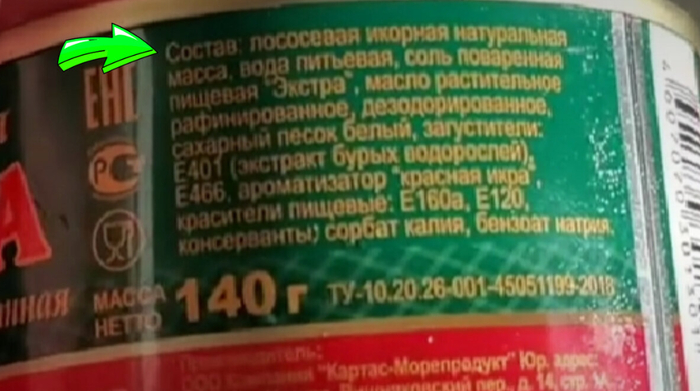 На банке написано, что это красная икра. Есть все маркировки. Консерва вроде бы нормальная. Заводская упаковка. Но, придя домой вы обнаруживаете, что содержимое далеко от идеала. А ведь на банке сразу указывалось такое качество продукта, но не каждый покупатель это замечает. Покажу одну фразу, которую нужно читать на железной банке с икрой, чтобы не купить плохой продукт.