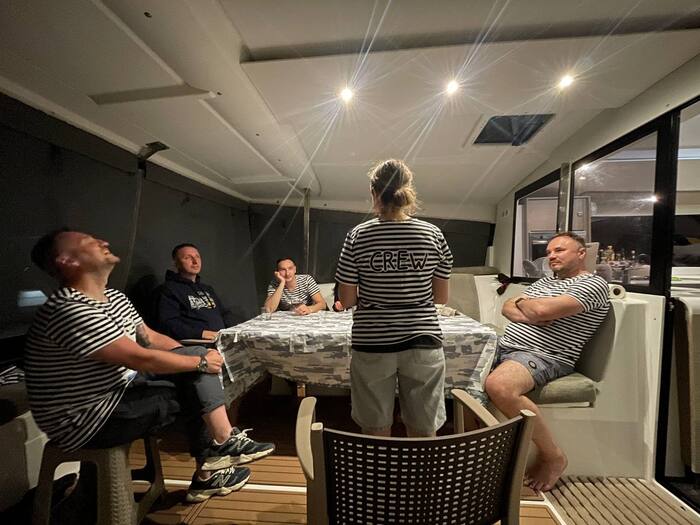 Были различные швартовки – и кормой к пирсу с мурингами, «по-гречески», и лагом к пирсу, и просто на якоре, и на якоре с оттяжкой на берег с ночными дежурствами. Все было интересно, вокруг была такая красота, каждый день рассказывал нам свою историю. По ощущениям каждого прошла не неделя, а месяц😊. А из событий на яхте в этот раз особенно запомнились два: празднование дня рождения одного из команды, и предложение руки и сердца. Последнее особенно впечатлило всех девушек экипажа😊