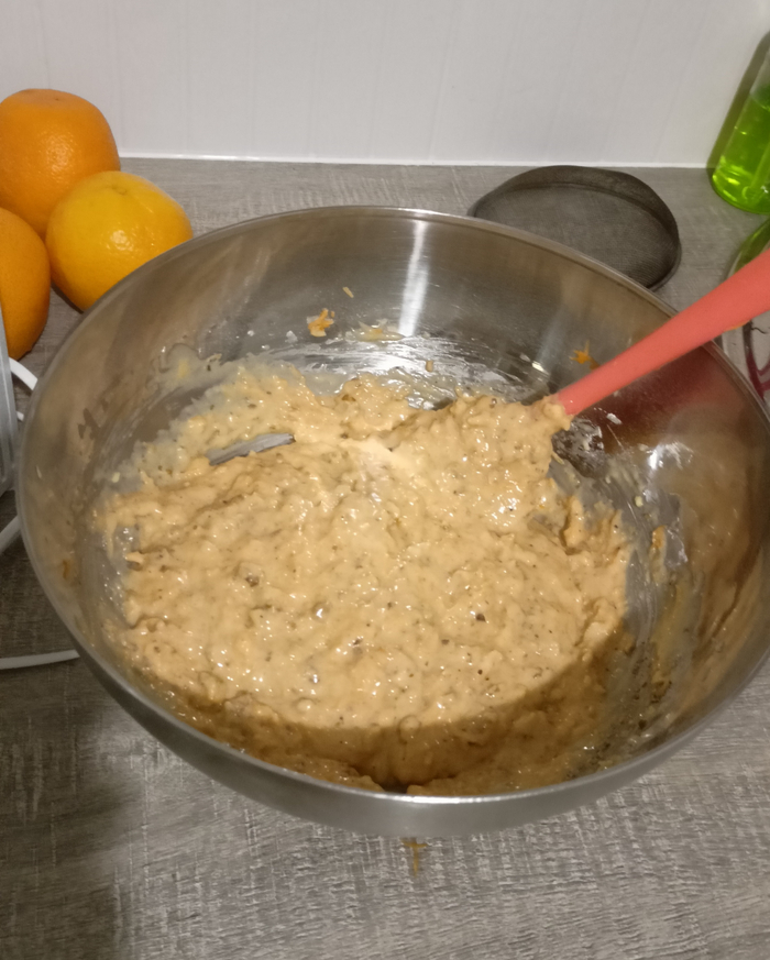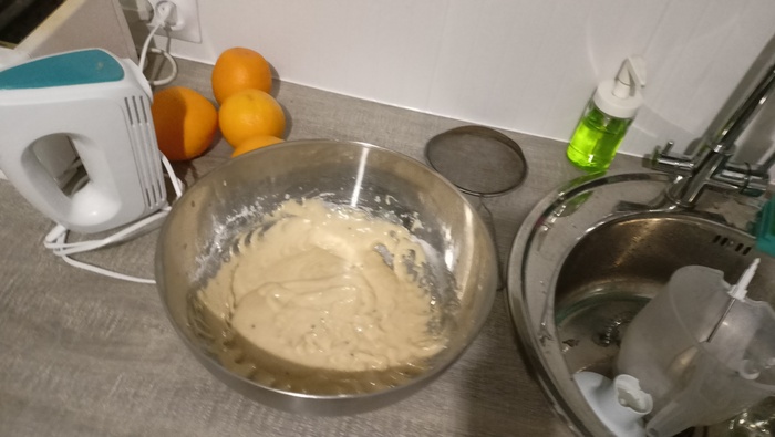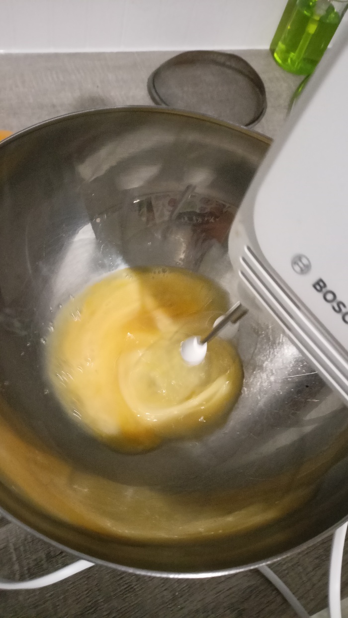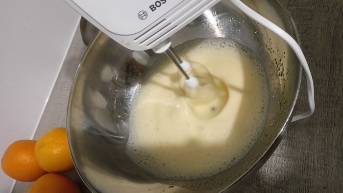 Не переставая взбивать, вливаем масло. Фото не прикладываю, потому что внешне ничего не поменяется.