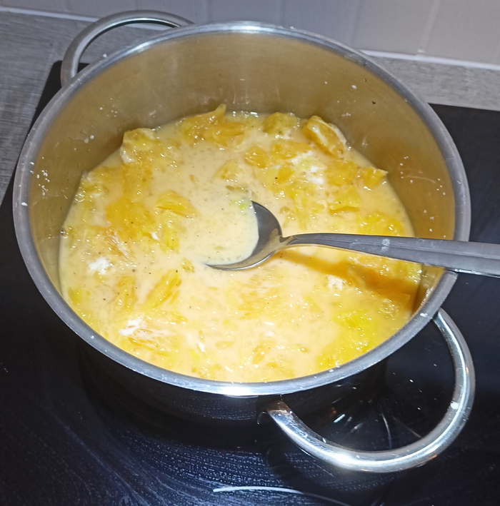 🥕 Сливочное масло и молоко ставим на огонь и доводим до кипения