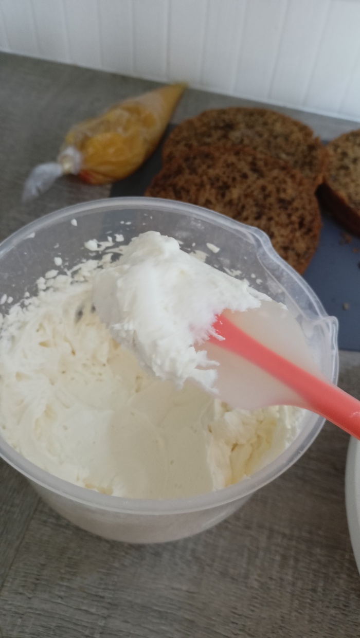 Данного количества крема хватило на сборку и на то, чтобы достаточно жирно намазать верхний корж.