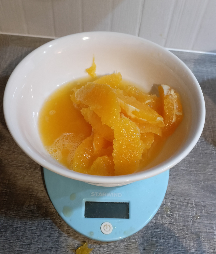 апельсиновая мякоть - около 250г (у меня получилась из двух апельсинов)