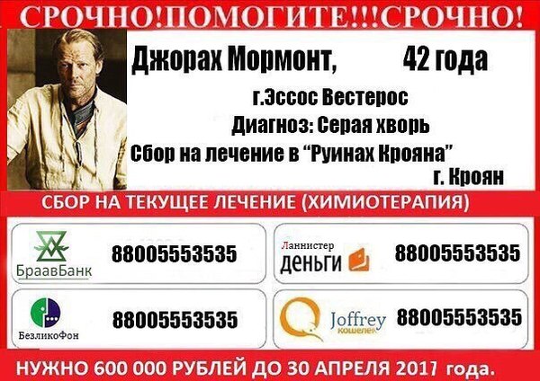 1078 DELETED Лига Престолов Не будьте равнодушными 9 лет назад Игра престолов Помощь Юмор Мормонт Джорах Мормонт Лечение