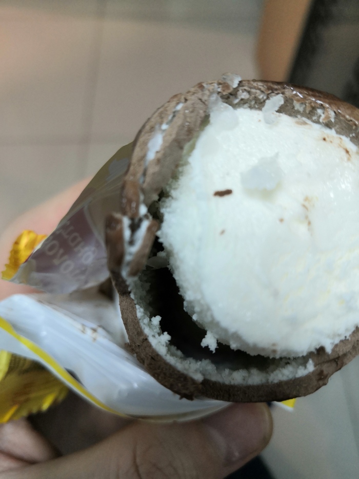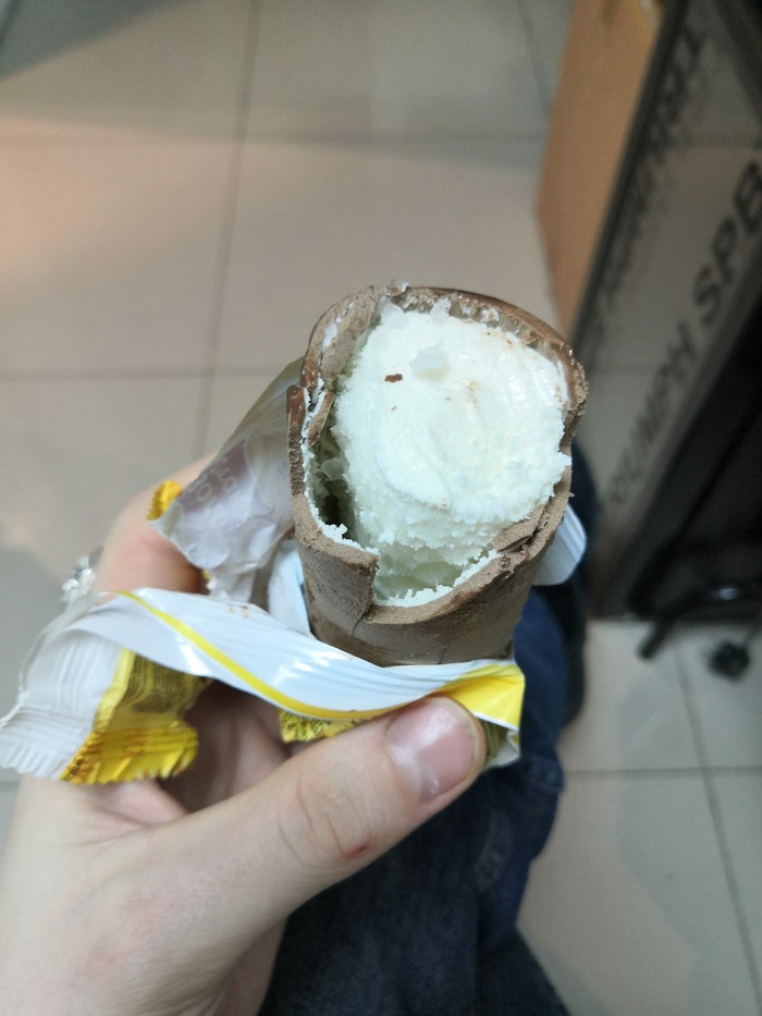 Купил мороженку на перекус. Люблю пломбир в глазури. Откусил первый раз не глядя, листая пикабу. А глазурь и обвалилась на пол. Смотрю, а там: