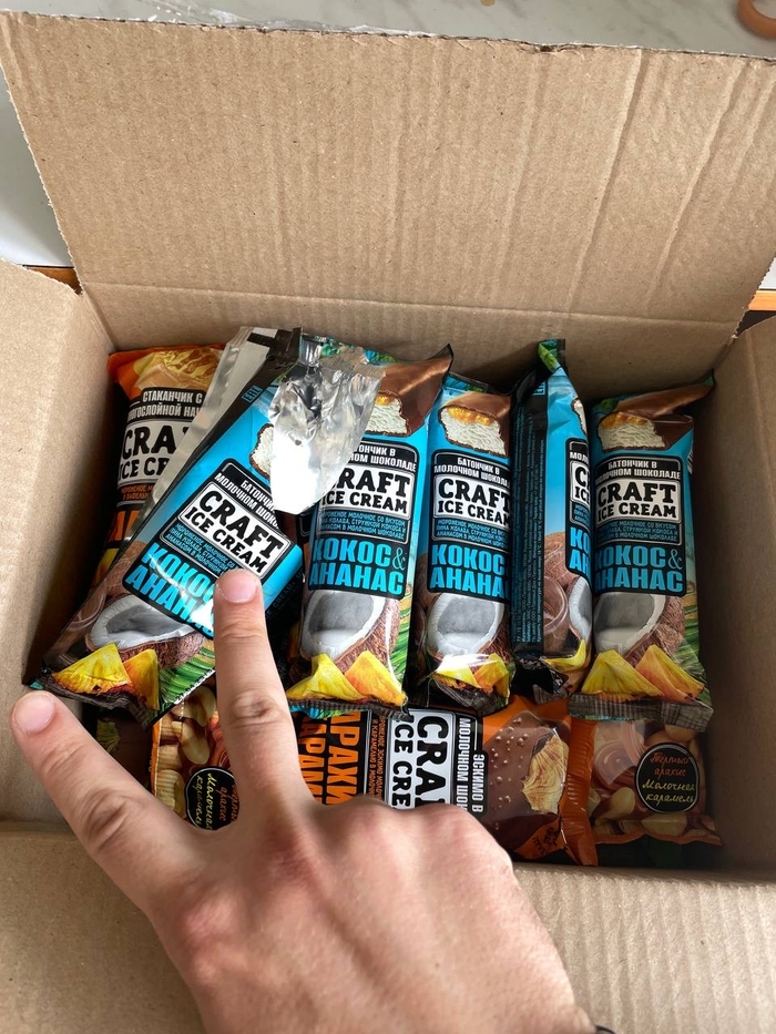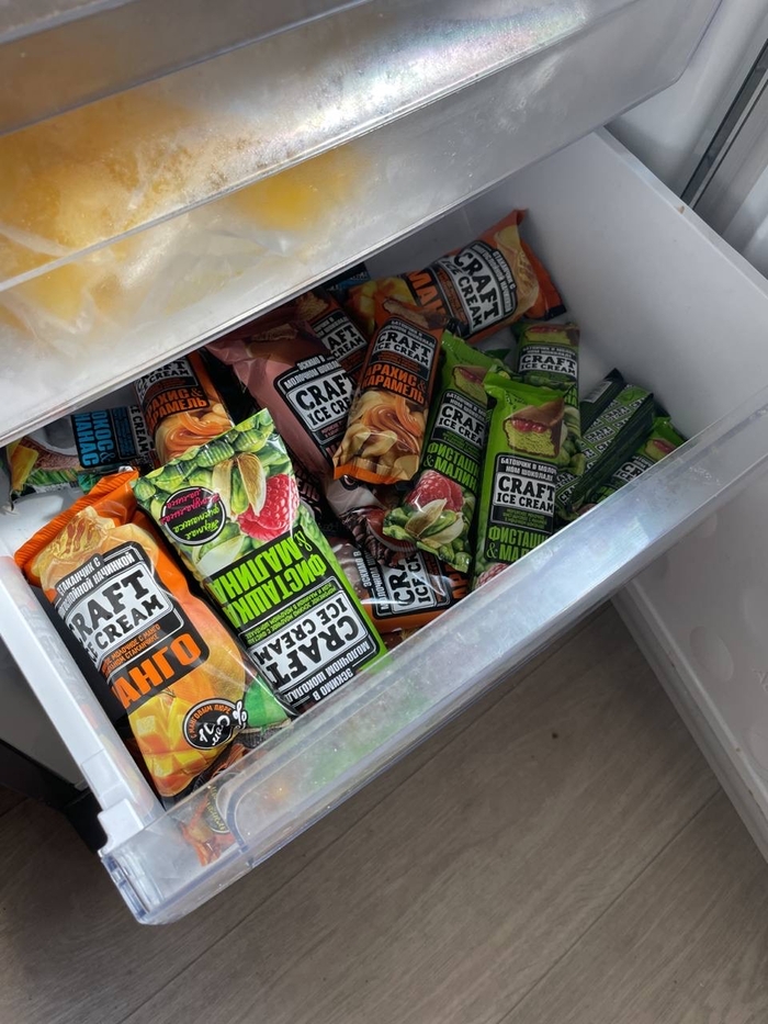 у меня было: покупаю мороженное. Оно в ларе, конечно, закрытом. Все правильно.