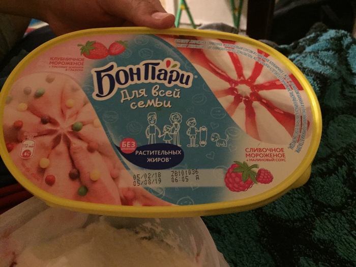 Сегодня после долгого рабочего дня решили с супругой поесть мороженного перед телевизором. Выбор пал на мороженное от бон пари. Почитав состав и то что написано на мороженном, решили взять.