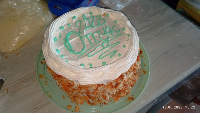 Завершающий этап: добавляем вторую часть сливок и посыпаем крошкой из печенья. Ставим в холодильник на ночь.
