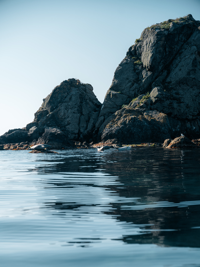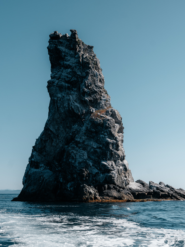 Сначала я их даже не заметил. Я был заворожен игрой туманов и волн, передо мной открылась суровость столкновения волн океана и скал. Эффекта добавляли порывы ветра, я был очень вдохновлен в этот момент. А потом увидел их