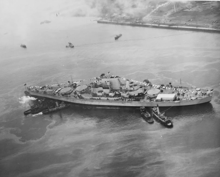 USS New Orleans после попадания торпеды Long Lance. Гавань Тулаги, конец декабря 1942 года