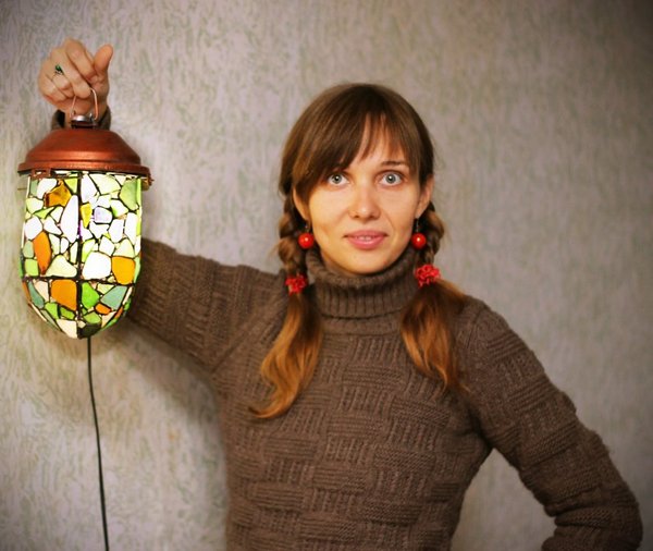 Делаю разные штуки уже больше года - вся квартира в витражах) Вот, например, люстра: каркас кто-то выбросил, товарищ-электрик помог со светодиодами, а плафоны мои: