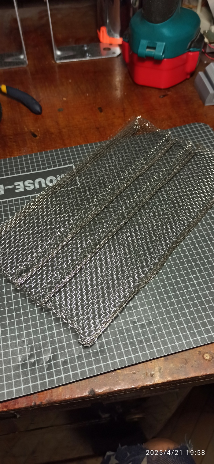 Толщина стеки заявлена ОДИН ММ(!!!) Нда... По факту - это толщина ВСЕЙ сетки. Которая кстати 0.9мм. То есть единичная проволочина - 0.4-0.45.... Ну... Попробуем. Что не так - буду просить сварить из нержавейки :)