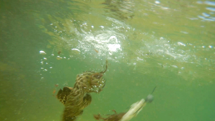 Пару часов покидал разные приманки, но хищник не отзывался. Зато когда уменьшился до размера мормышки, сразу взял аквариумную рыбку )))