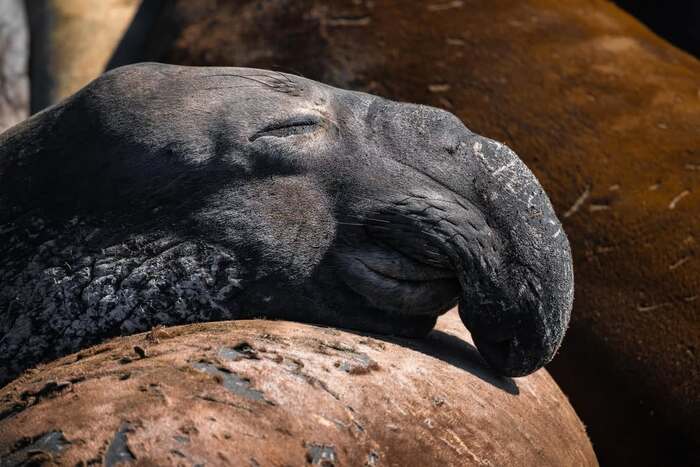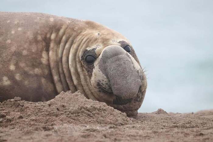 Морских слонов, кстати, аж два вида – северный и южный. Первые обитают на западном побережье Северной Америки, а вторые – в Антарктике, но похожи они неимоверно. При первом же взгляде на самцов становится понятно, чем они заслужили своё имечко. Во-первых, разумеется, размерами, а, во-вторых, носом.
