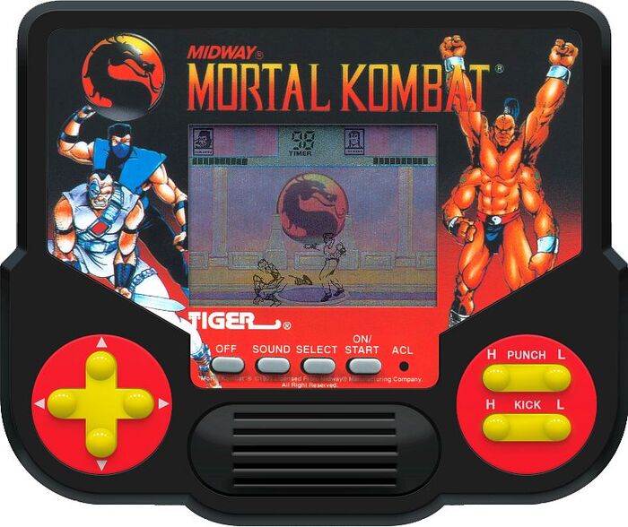 Вторая версия карманной консоли от Тайгер. А знаете что тут есть!?!? Знаете, знаете... Есть считыватель карточек со штрихкодом! Это штука позволяет получать какие-либо бонусы для себя, а так же и в обратную сторону для оппонента. Ростер немного потерял в бойцах нет Сони, Кано, Джонни и Цуна. Насколько я знаю, поиграть кроме как на консоли в это нельзя, в отличи от первой части. Ждём когда наконец можно погрузиться в эту игру.