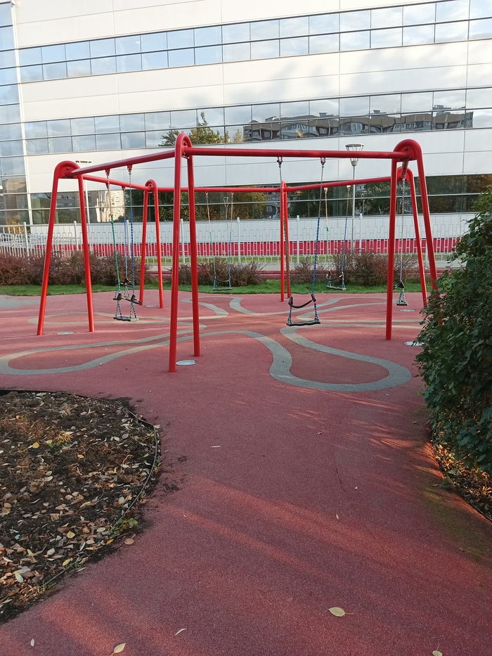 Есть у нас парк недалеко. Там - вполне избыточное количество качелей для детей (и взрослых). Есть одни малышовые (те, что имеют ограждение со всех сторон).