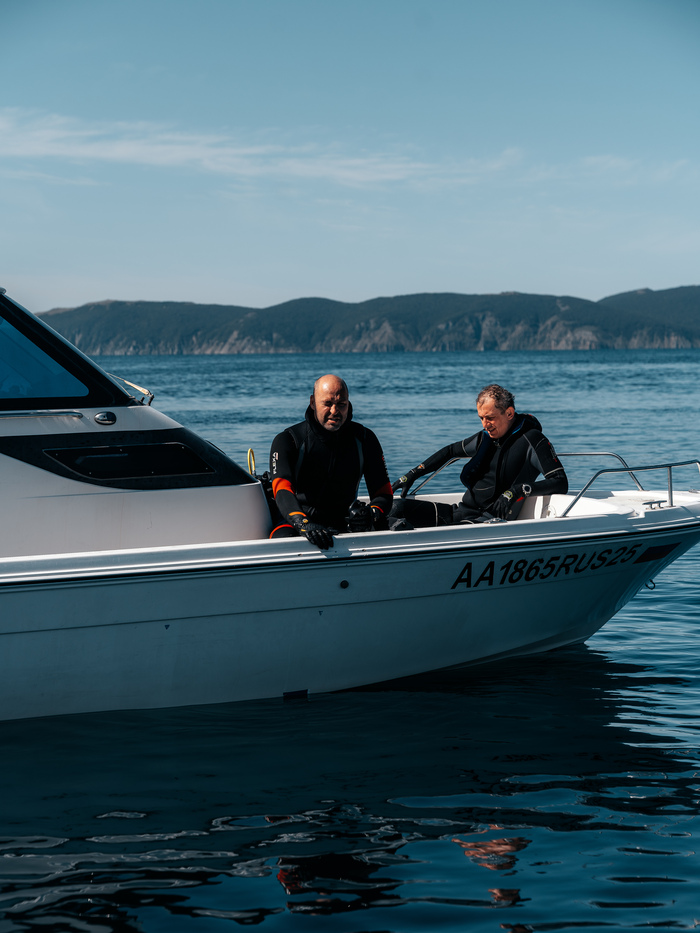 Отдельный респект нашим капитанам — настоящим «морским волкам». Они не просто доставляли нас до точек погружения, но и чутко страховали, чувствуя море и погоду как никто другой. Крепкие ребята, на которых можно положиться.