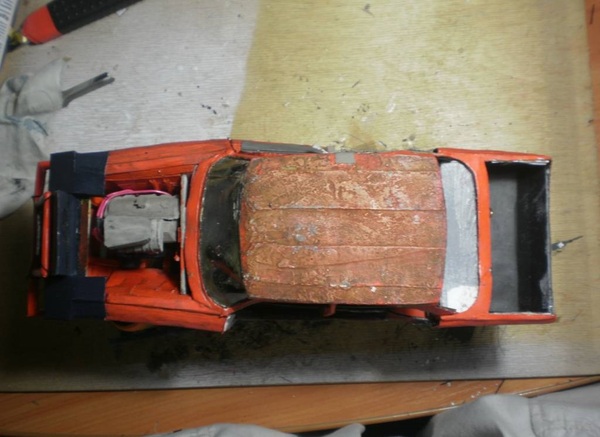 И, в начале нового года, я вспомнил про авто. Решил доделать. Хотя бы на скорую руку, так сказать. В итоге имеем то, что видим на фото. К сожалению закончились две модельные краски: чёрная и ржавая. Пришлось выкручиваться, колеса красились простой акриловой краской, а вместо ржавчины использовал "кирпичный". Вид он все же испортил, но это поправимо. Когда-нибудь соберусь и куплю краску (кроме черной, в магазине её нет всегда когда я захожу).