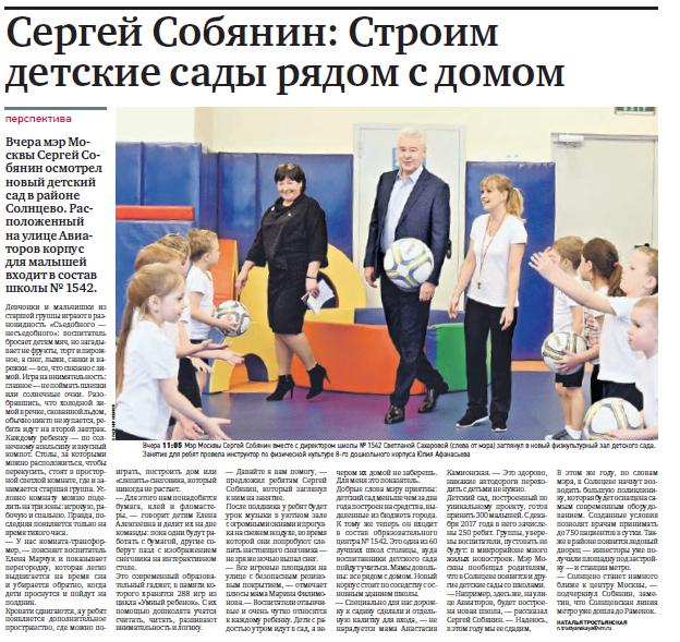 Сергей Собянин: Московские дети должны чувствовать себя хозяевами в городе.Город многое уже сделал на этом пути: построены современные детские клиники и перинатальные центры, хорошее образование дает большинство школ. (https://www.mos.ru/mayor/themes/9299/4778050/)