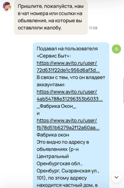 Я заметил странную активность на Авито: три аккаунта, которые предлагали одни и те же москитные сетки, причем все объявления были размещены по одному и тому же адресу — г. Оренбург, ул. Сызранская, д. 101. Это частный дом, и невозможно, чтобы три разных организации, занимающиеся одной и той же деятельностью, располагались в одном и том же помещении. Логика подсказывает, что это либо нарушение правил, либо попытка обойти систему.