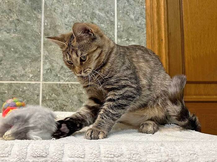 Тори контактная кошечка, знает и доверяет человеку, с новому человеку первое время настороженно.
