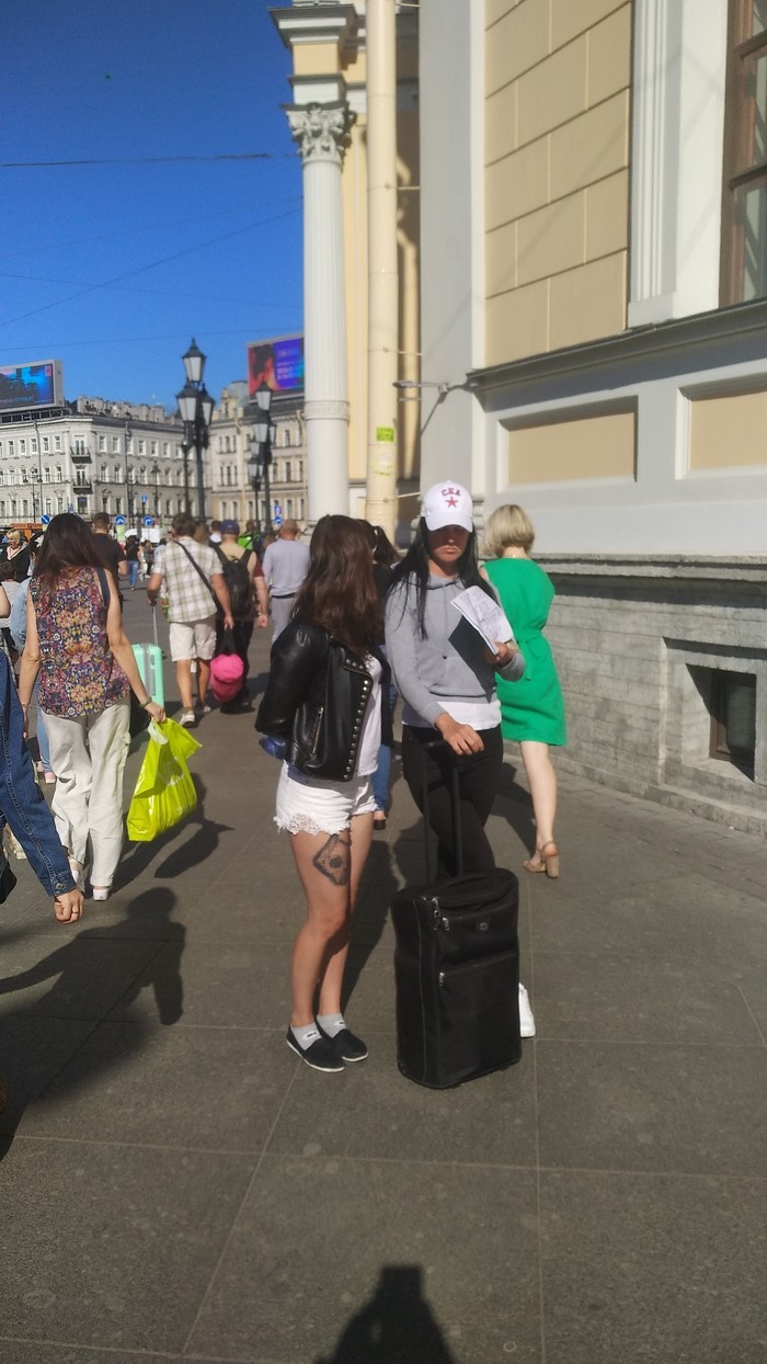 В пятницу 26 июля, в шесть вечера, проходя около Московского вокзала, наблюдал сию "барышню", которая стояла с грустным видом и привлекала внимание проходящих мимо людей.